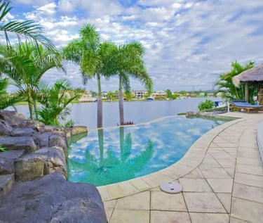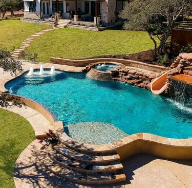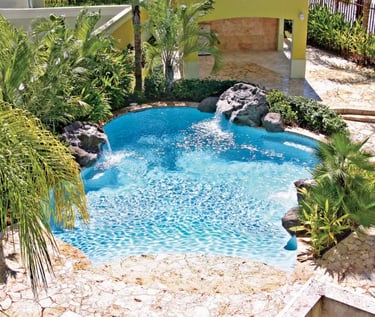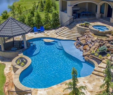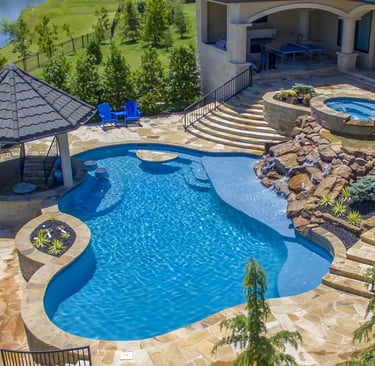Freeform curved, Lanai, Modern geometric, Pool + Spa combo